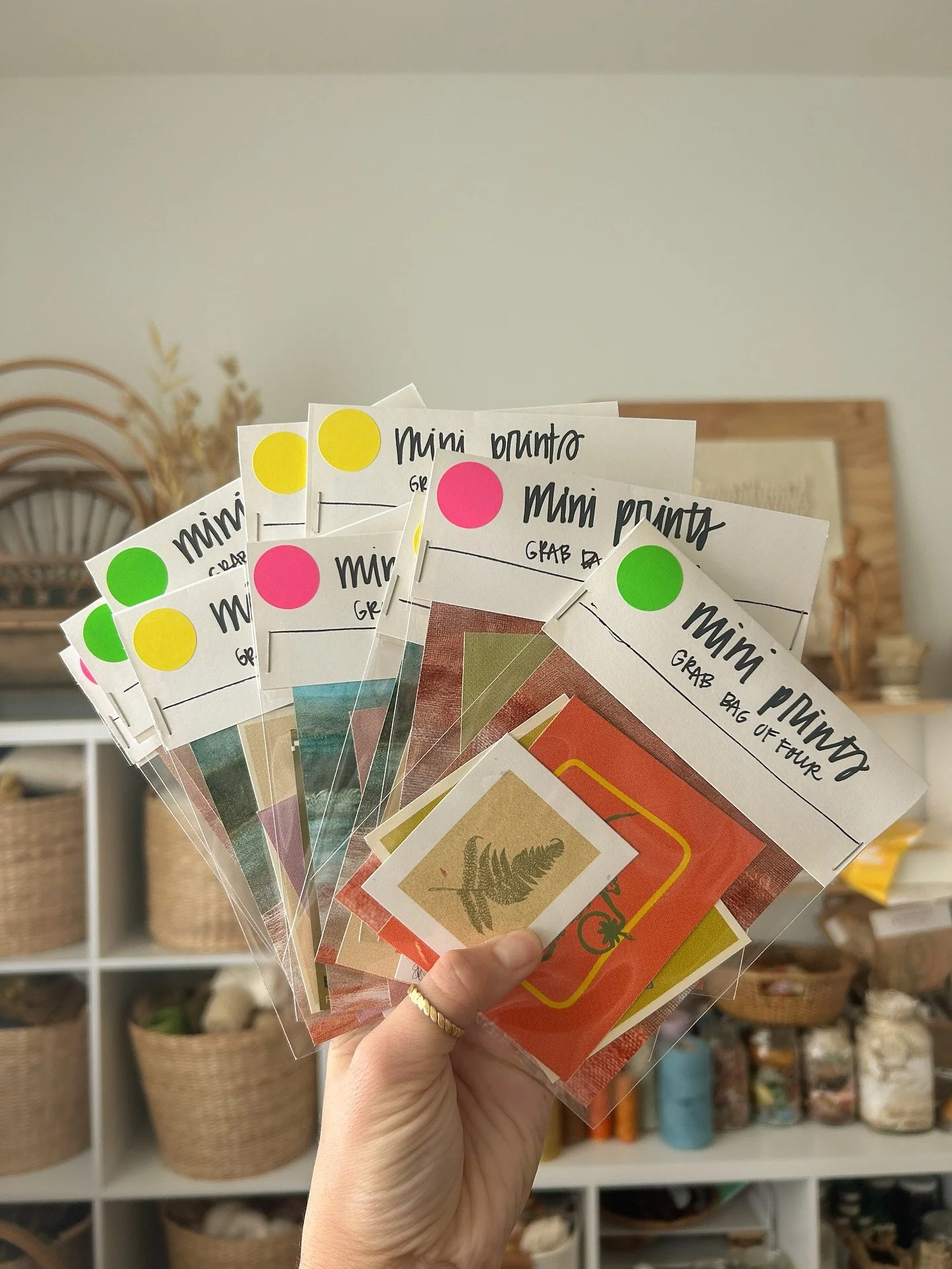 Materials: hand dyed merino wool roving, raffia, handspun art yarn, wool and silk roving, recycled cotton rope, recycled t-shirt yarn, hand dyed wool, silk velvet ribbon, chunky wool yarn, jute string
